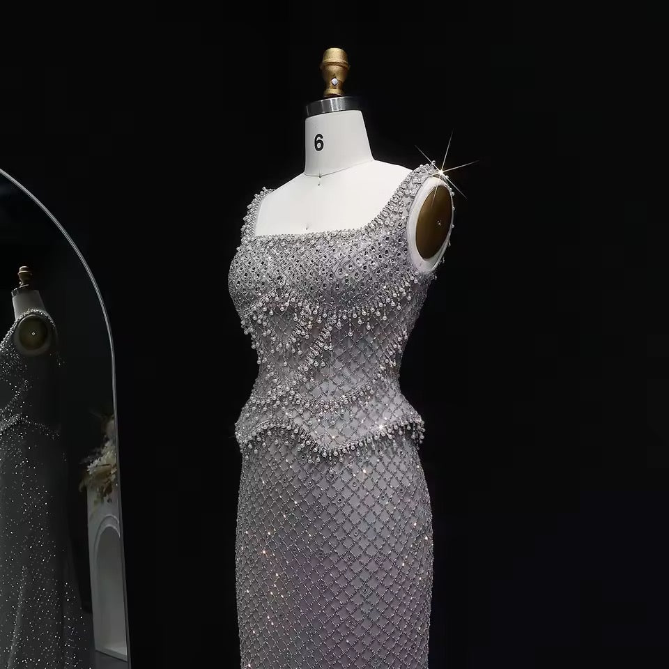 Luxury Beaded Crystal Long Straight Evening Dress